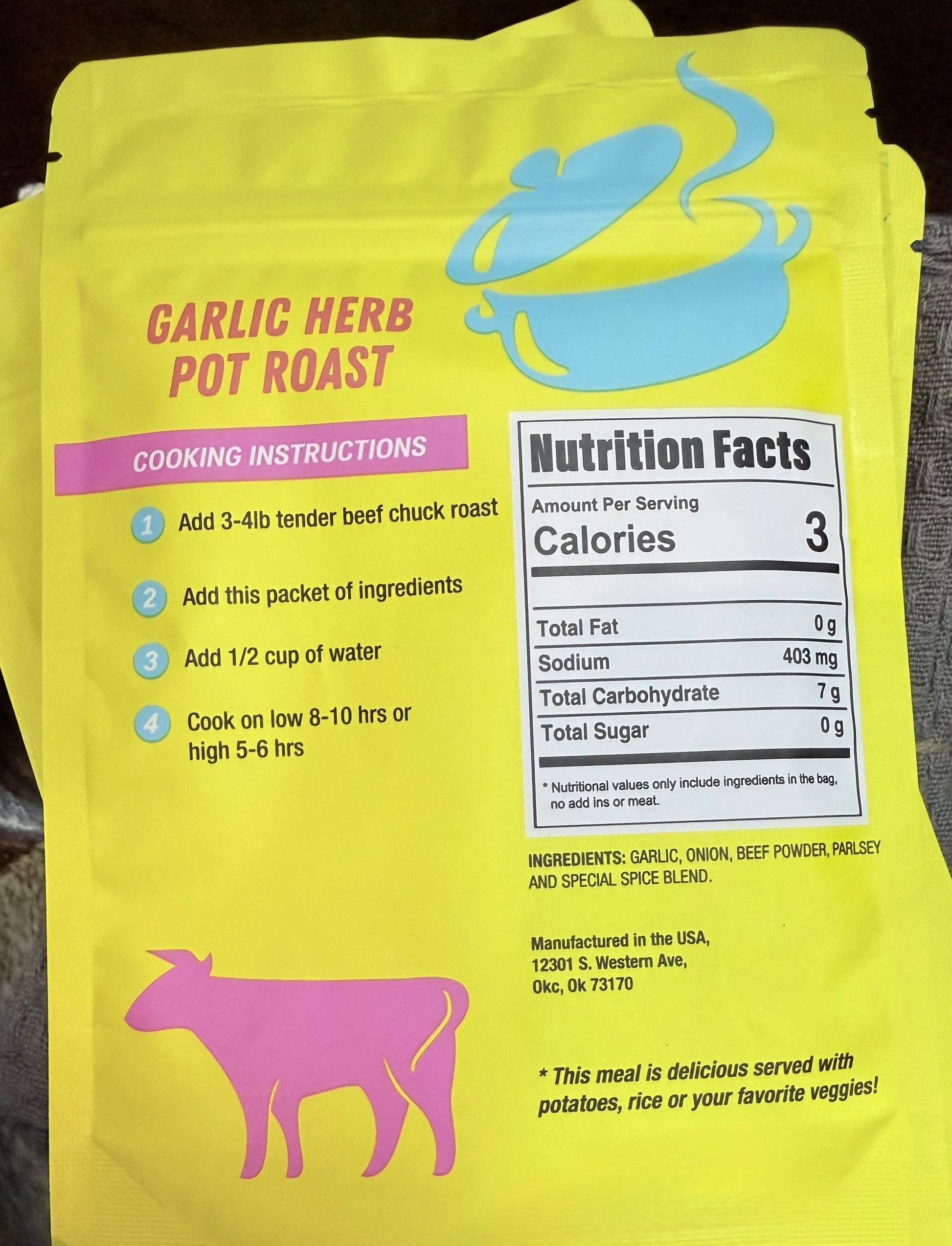 Our garlic herb pot roast is delicious served with mashed potatoes or steamed veggies!!